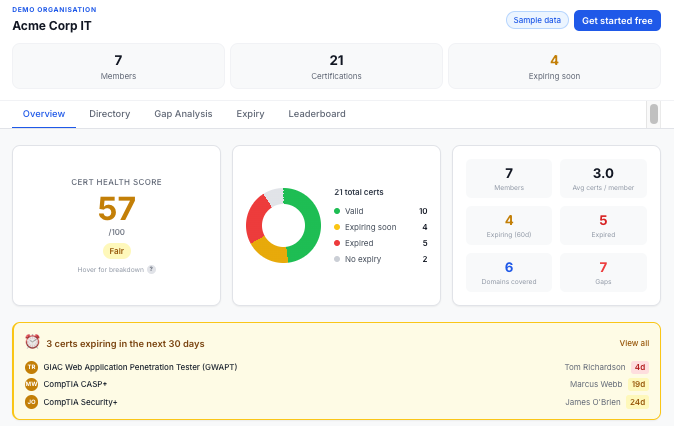 TrackACert is designed for IT managers, team leads, and organizations that depend on certified professionals to operate effectively.
